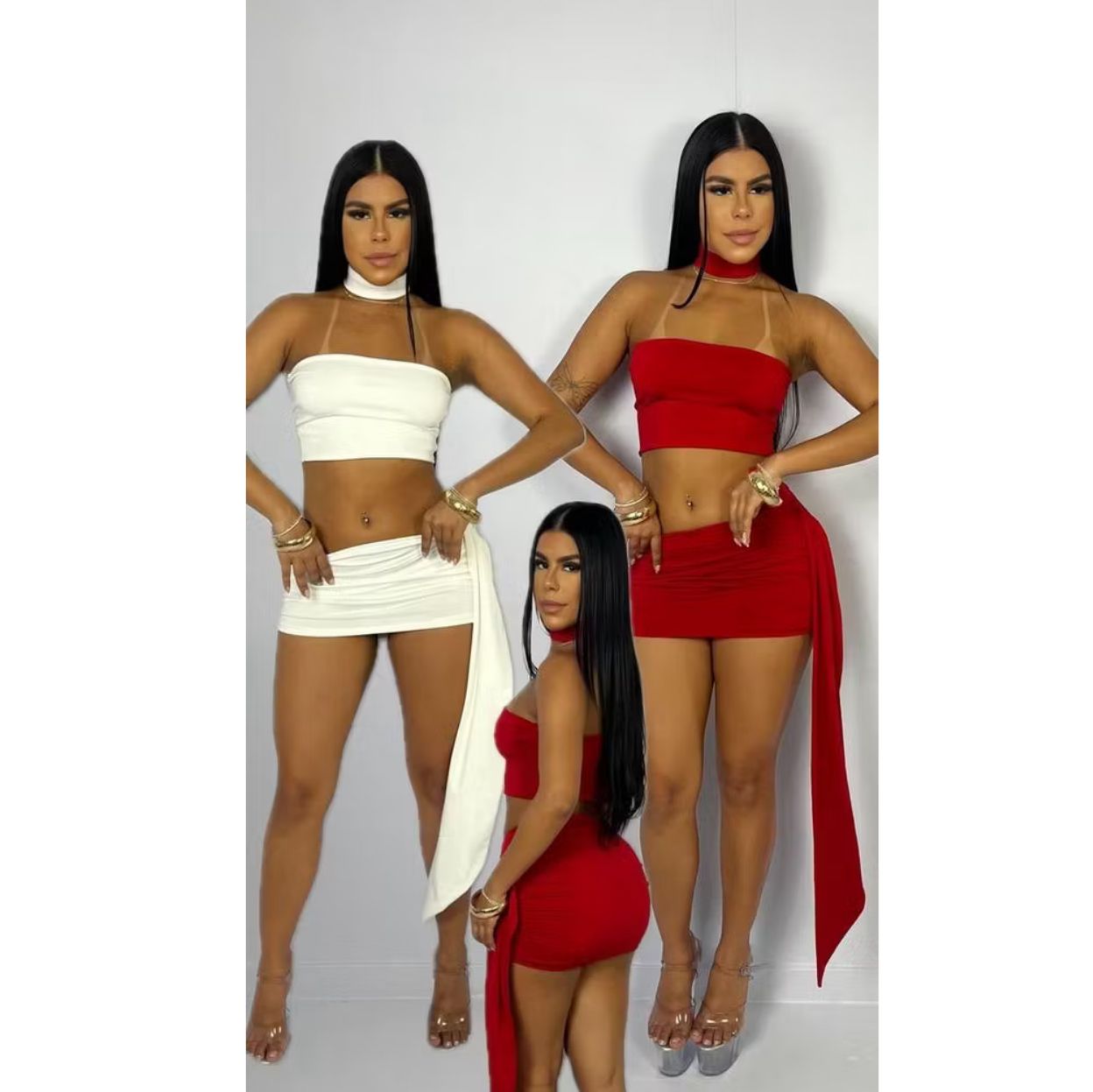 O Conjunto Bela é sinônimo de estilo e sensualidade! Feito em suplex de alta elasticidade, valoriza o corpo e garante conforto. O top tomara que caia traz modernidade, enquanto a saia com faixa lateral dá um toque elegante e fashion. Perfeito para festas, baladas ou eventos especiais.